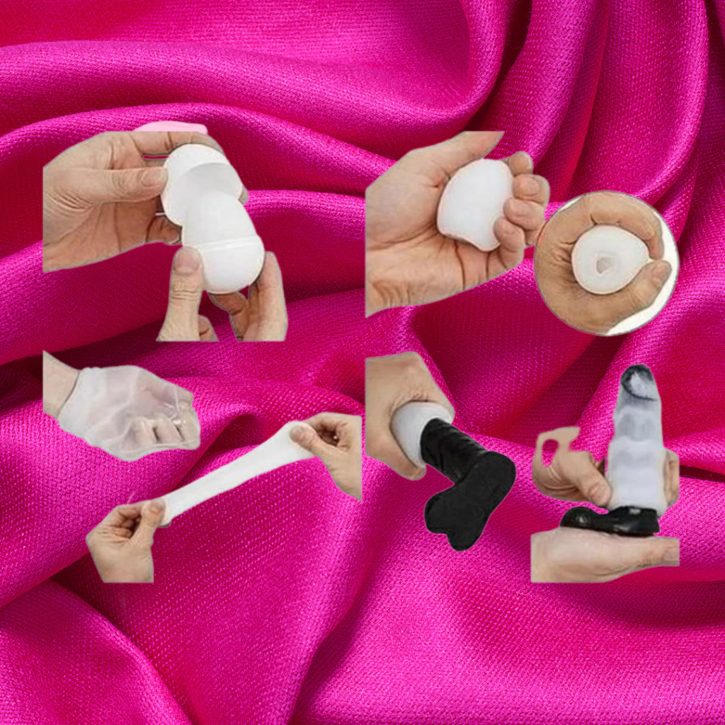 Essa touca ficará somente na glande (pois se descer por todo o pênis ela poderá rasgar), então foque na glande.