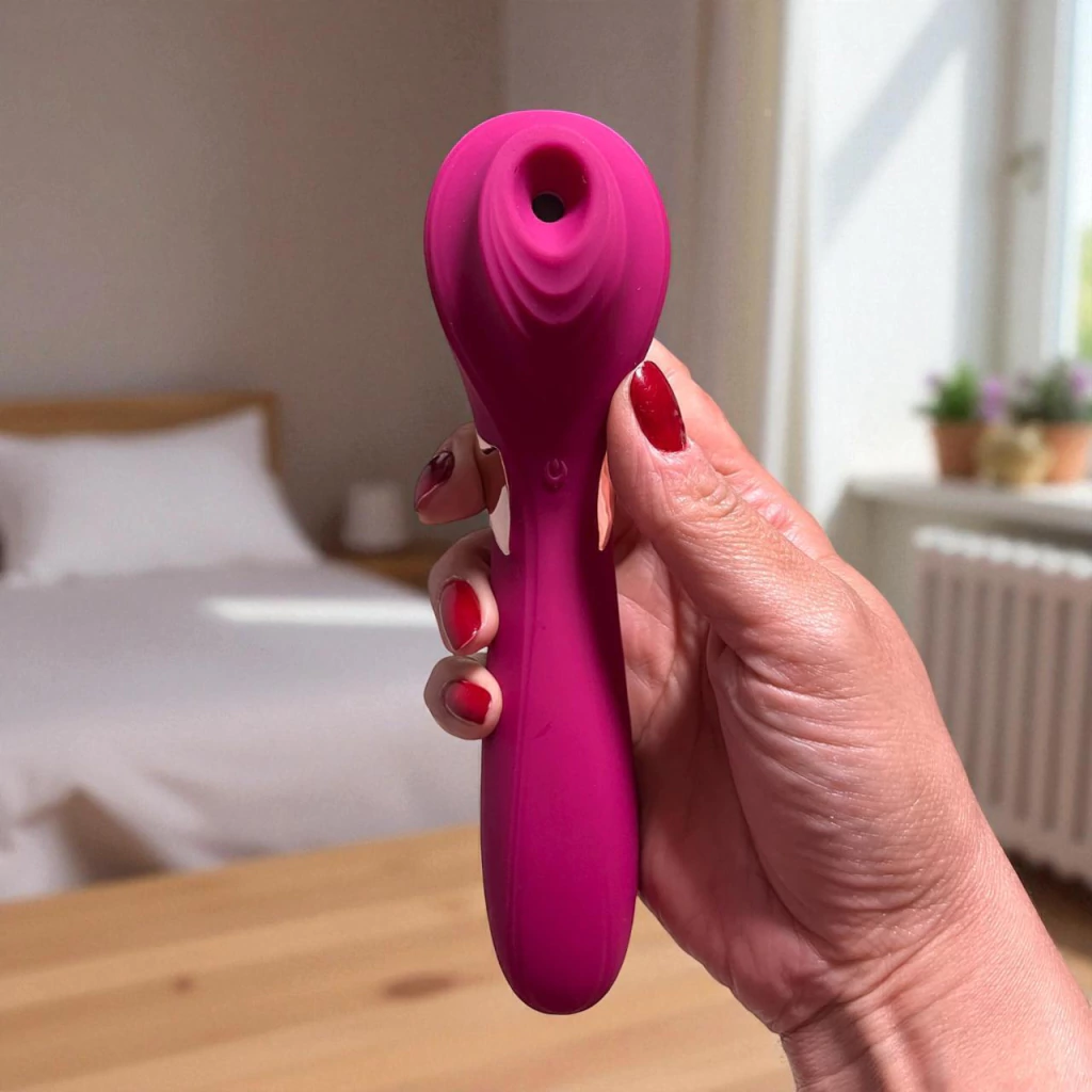 Seu design ergonômico e toque macio garantem conforto e praticidade, enquanto a tecnologia de pulsação estimula simultaneamente o ponto G e o clitóris — tudo isso com materiais seguros e fáceis de higienizar. É o combo perfeito entre eficiência, delicadeza e inovação.